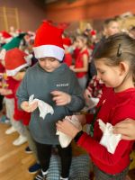 3 grudnia uczniowie klas 1–3 obejrzeli wyjątkowy teatrzyk mikołajkowy o pracowitych elfach, który wprowadził wszystkich w świąteczny nastrój. Wesołe dialogi oraz pełne humoru sceny wywołały wiele uśmiechów i sprawiły, że dzieci z zaciekawieniem śledziły losy bohaterów.